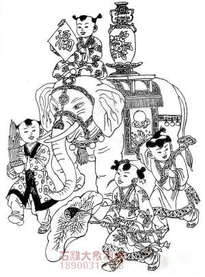 象在中國傳統(tǒng)文化中是吉祥、太平的象征,它性情溫和,知恩圖報,一直深受中國人的喜愛。傳說五帝之一的舜是中國歷史上馴服野象耕田犁地的第一人,他死后陵墓前曾出現(xiàn)大象刨土、彩雀銜泥的瑞兆,這應該是“太平有象”的最早傳說。此后,人們運用諧音、象征等手法,把“太平有象”用圖畫、雕刻等形式表達出來,寓意天下太平、五谷豐登。