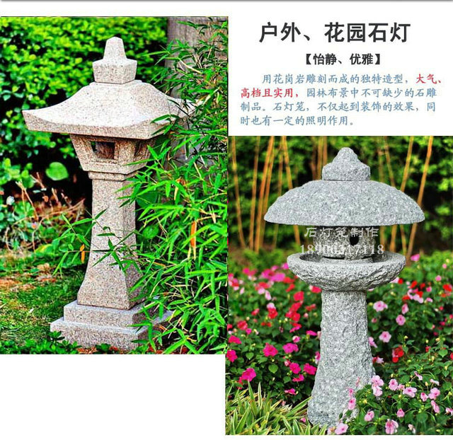 石燈籠是日本石文化的重要內容之一,也是近年來我國出口日本石制品的一個重要品種。石燈籠在日本有著非常悠久的歷史。在佛前獻燈火是佛教的重要禮儀之一,自奈良時代 (公元 710~ 794年 )起日本在修建寺院時就開始在寺院的正面建造石燈籠以保護向寺院所獻的燈火。日本現存的最古老的石燈籠是奈良時代的當麻寺石燈籠,距今已有一千多年的歷史了。到了江戶時代 (公元 1603~ 1867年 )石燈籠在日本已廣為流傳,一些寺院里造型精美的石燈籠被作為樣本模仿雕刻以至形成了石燈籠的各種形式。石燈籠被用于園林、庭院的裝飾始于十六世紀晚期的安土桃山時代,當時由于茶道的大發展,石燈籠常被作為茶室的一種露天裝飾物而廣泛進入庭院裝飾。隨著石燈籠用途的改變,石燈籠的樣式也就更加多樣化了,例如出現了三腳或四腳的雪見燈籠,同時對竿和笠的部分也給予新的設計,石燈籠的式樣由模仿進入創新。現在日本的石燈籠除了少量用于寺院神社以外,大多數的石燈籠是用于庭院、園林裝飾使用。
