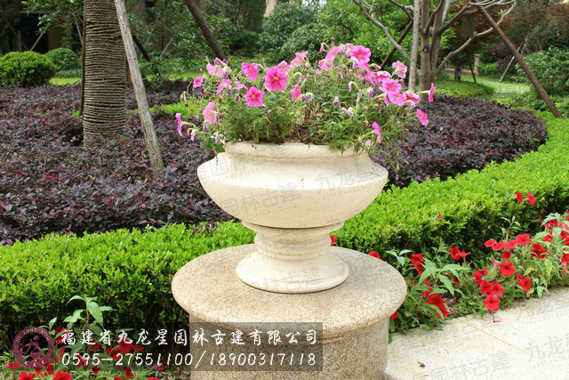 福建省九龍星園林古建有限公司常年生產加工適用于高端住宅景觀、商業景觀、私家花園等景觀裝飾石雕花缽水缽,常用石材有銹石、大理石、花崗石。公司坐落于著名的“中國石雕之都”福建省惠安縣,為大量石雕石材源頭廠家,生產的花缽水缽產品用料講究、價位合理、工藝嚴謹,成品深受廣大客戶好評。