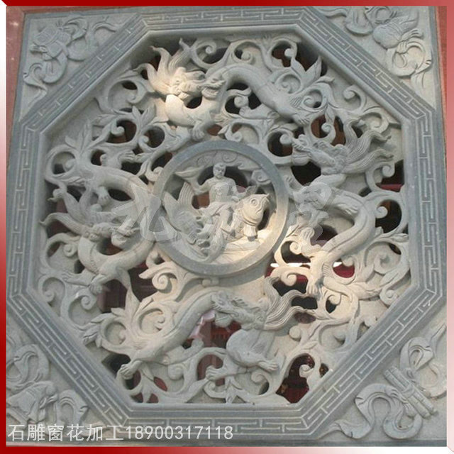 石窗,又稱石花窗,石漏窗。一個“花”字,足可以讓人對它的藝術性浮想聯(lián)翩,又足以讓人對它通透采光的實用性窺見一斑。石窗以長方形和方形最多,還有圓形、拱形等。長方形的石窗一般以直式為多,橫式次之。石雕花窗一直以來廣泛用在園林古建、廟宇建筑中,屬于傳統(tǒng)建筑構件類。