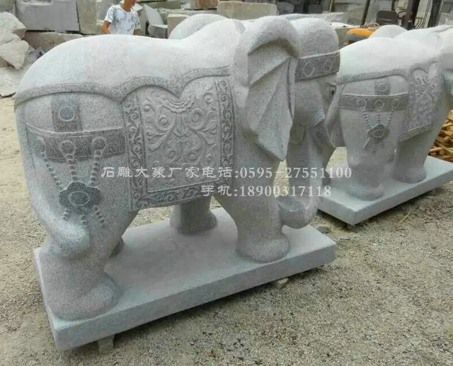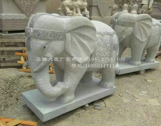 在中國的寺廟、園林、景觀等很多地方可以看到擺放的石雕大象。它是中國傳統古建筑裝飾不可或缺的一種飾物,現在一些愛好工藝品的人家在辦公室內,或者宅前都會擺放石雕大象。