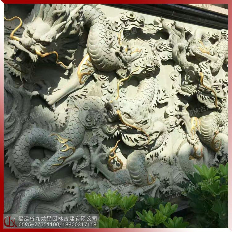 石雕青石浮雕九龍壁