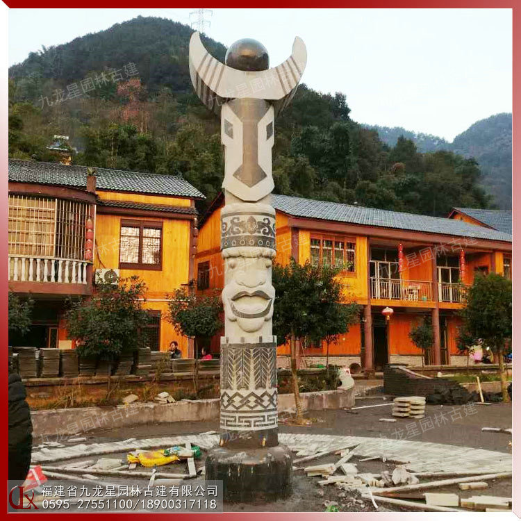 民族圖騰柱 異形圓柱加工 石材裝飾圓柱定制
