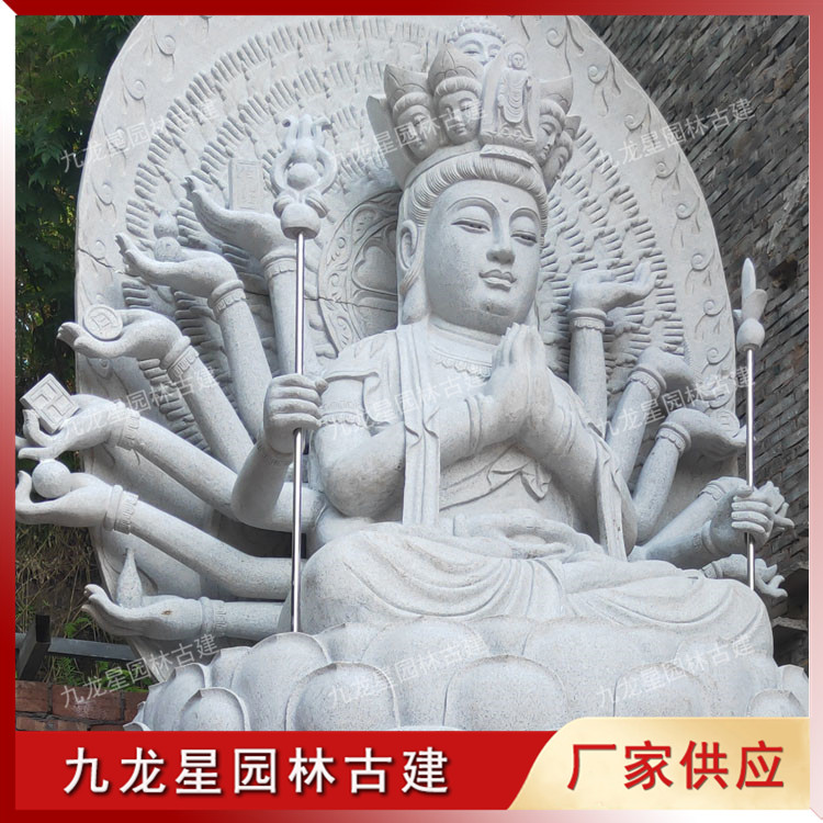 石雕刻千手觀音菩薩像 觀音菩薩石雕造型圖 材質花崗巖